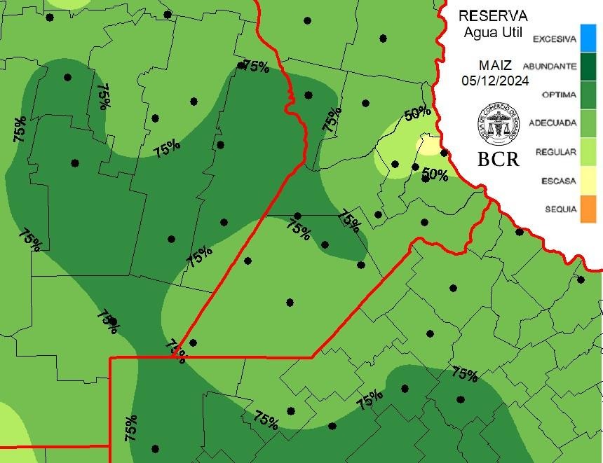El 21% de los cultivos de maíz temprano, principalmente en el sureste de Córdoba y el noroeste de Buenos Aires, recibieron más de 60 mm de lluvia en los últimos 10 días, lo que garantiza un buen rendimiento. Sin embargo, la situación es heterogénea. Mientras algunas áreas recibieron 100 mm de lluvia, otras solo 15 mm, lo que subraya la importancia de la continuidad de las precipitaciones para el desarrollo de los cultivos en etapas iniciales. En áreas como Rosario, la falta de agua sigue siendo una preocupación.