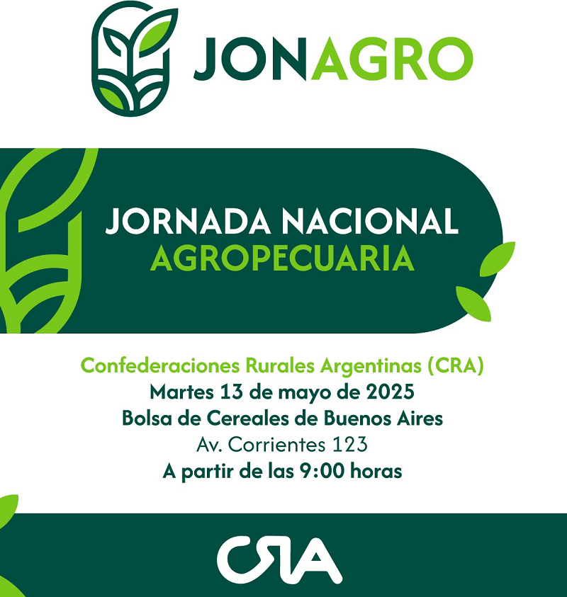 Confederaciones Rurales Argentinas (CRA) anunció el lanzamiento de Jonagro 2025, su congreso anual que se llevará a cabo el martes 13 de mayo en la Bolsa de Cereales de Buenos Aires, a partir de las 9:00 horas.