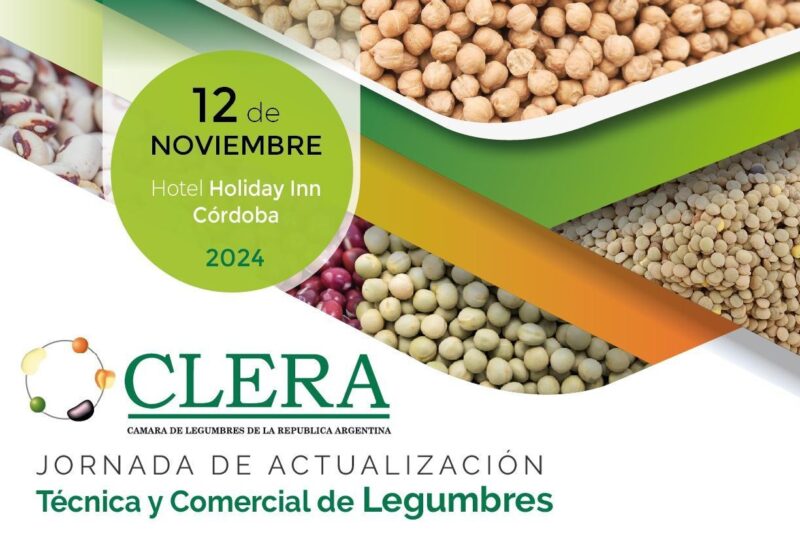 La Cámara Argentina de Legumbres (CLERA) anunció la Jornada de Actualización Técnica y Comercial de Legumbres, a realizarse el 12 de noviembre en Hotel Holiday Inn, de Córdoba.