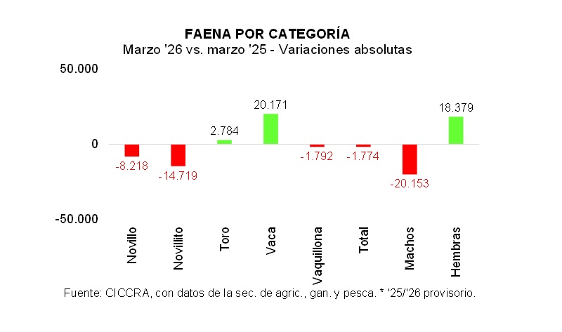 Durante marzo de 2026, la industria frigorífica faenó un total de 1,029 millones de cabezas de hacienda vacuna. Este nivel de actividad se posiciona entre los más bajos de las últimas décadas, ocupando el puesto número 34 de los últimos 47 marzos analizados.