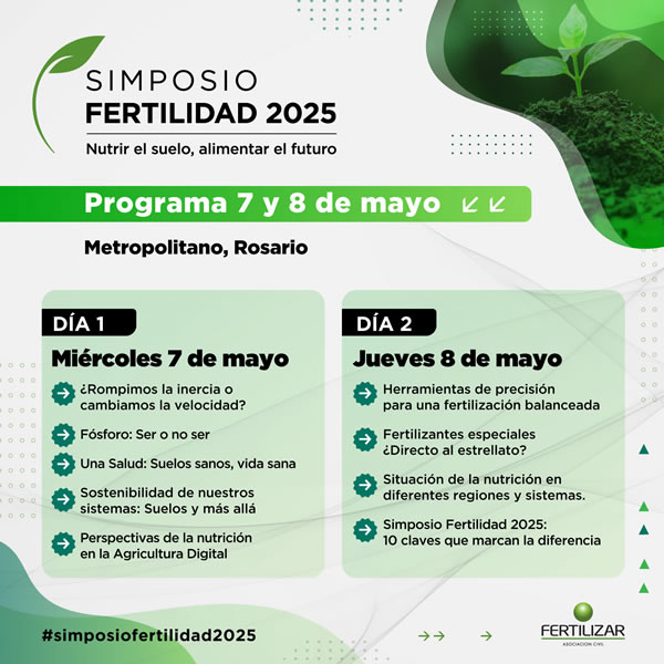 En un contexto donde la productividad y la sostenibilidad del agro son temas centrales, Fertilizar Asociación Civil llevará a cabo el Simposio Fertilidad 2025, de relevancia nacional e internacional, bajo el lema “Nutrir el suelo, alimentar el futuro”.