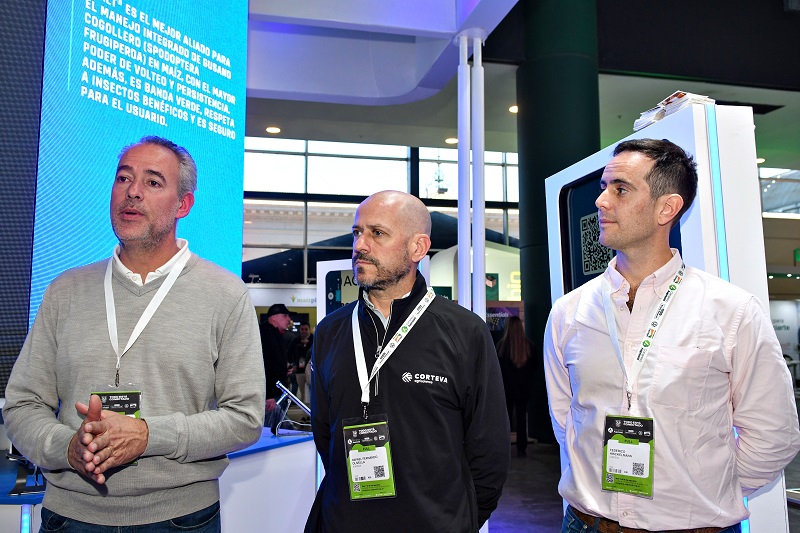 Rafael Olivella, Product Manager Biológicos; Rolando Di Marco, Crop Protection Leader región Sur, y Federico Hinckelmann, Product manager de fungicidas e insecticidas de Corteva, fueron los encargados de brindar la información de cada producto.