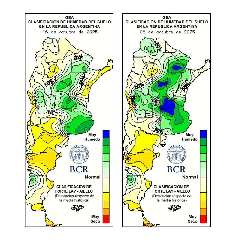 Por eso ha sido de suma importancia la tregua climática de la primera quincena de octubre y el gran esfuerzo realizado para sembrar maíz, desafiando las condiciones de los caminos y los lotes. Especialmente, el último fin de semana permitió acelerar el tramo de siembra final. La región suele recibir entre 40 y 50 mm en la 1ra quincena, pero el 62% del área recibió menos de 40 mm.
